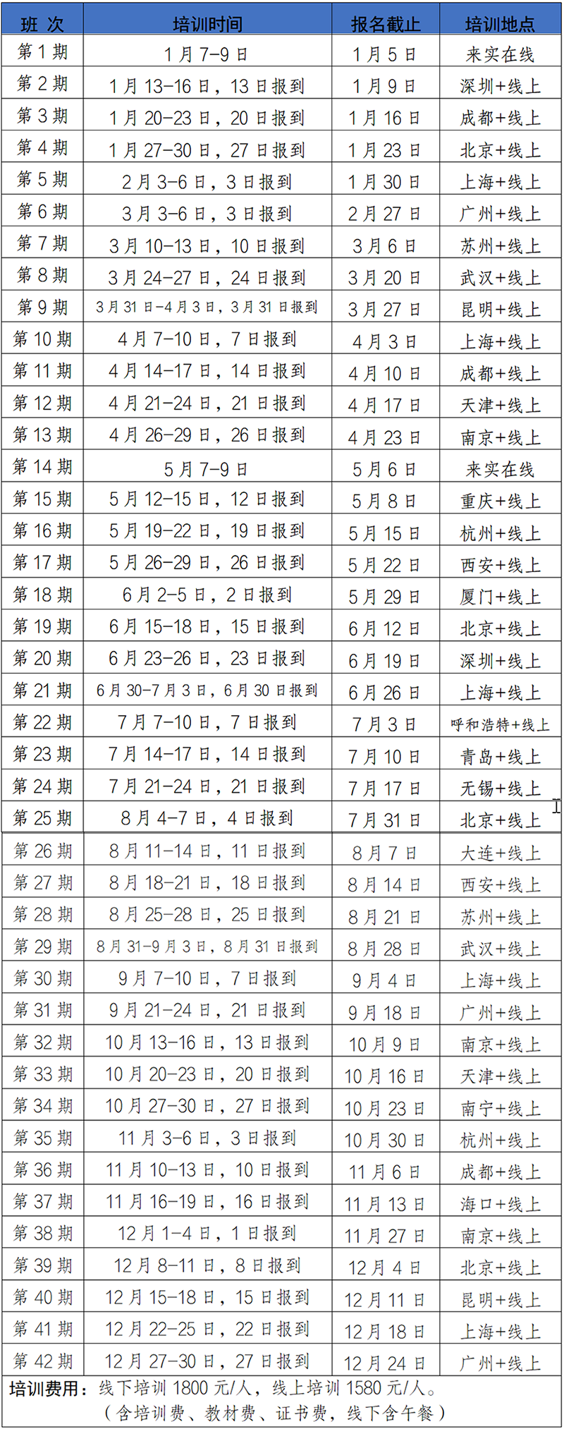 2026年培训课程基本均以线下+线上两种方式同时开展,学员可根据自身需求选择到培训现场或通过线上同步直播的方式进行学习。